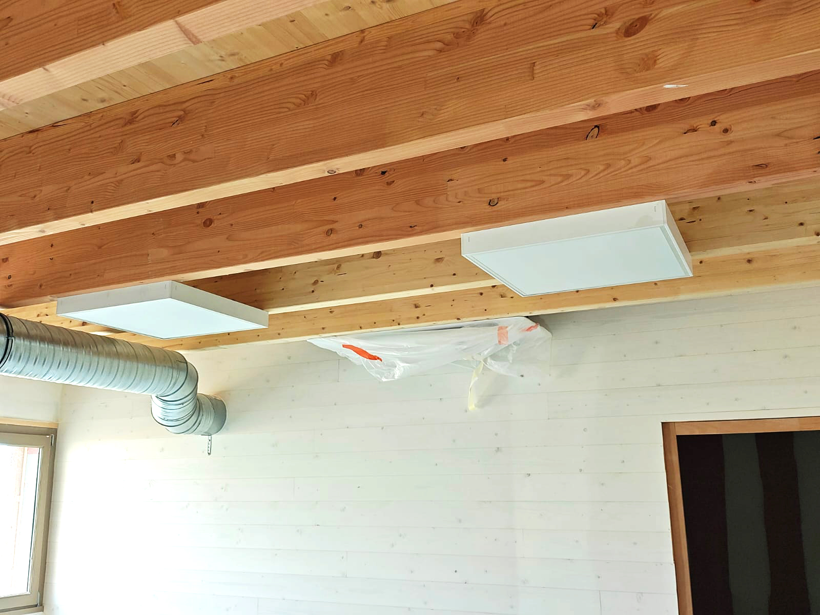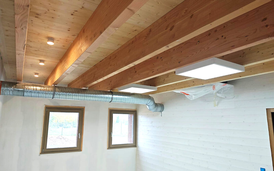 Sur le chantier de Chenon, une nouvelle étape vient subtilement transformer la perception du bâtiment, la mise en œuvre de l’éclairage intérieur.