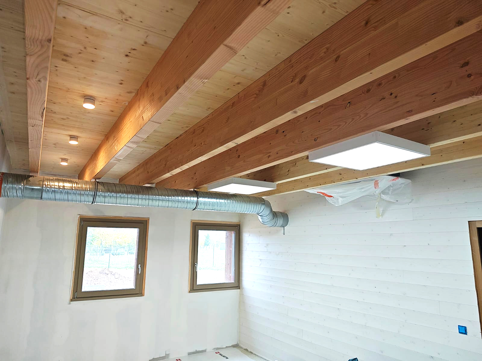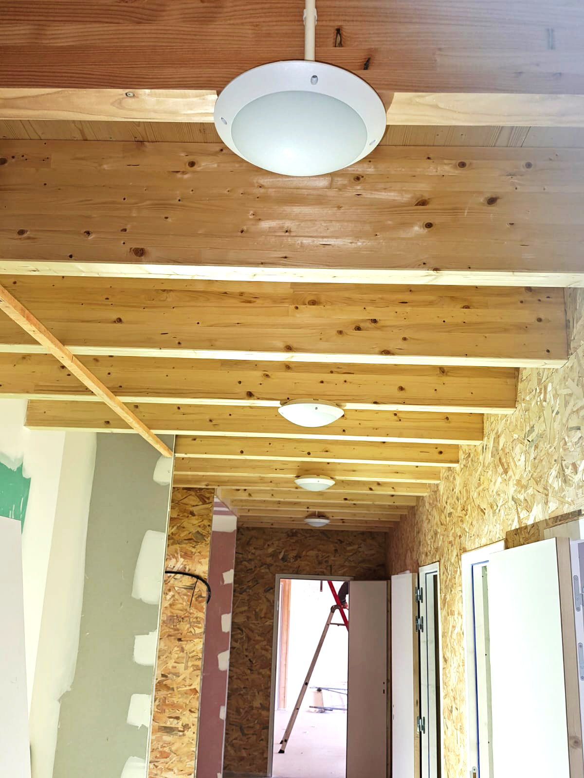 Moins visible que la structure, mais tout aussi essentielle, cette phase vient accompagner la lecture des volumes et affirmer les ambiances futures. Sous l’intervention des équipes, les réseaux se mettent en place, les points lumineux se dessinent, et chaque implantation est pensée avec précision.